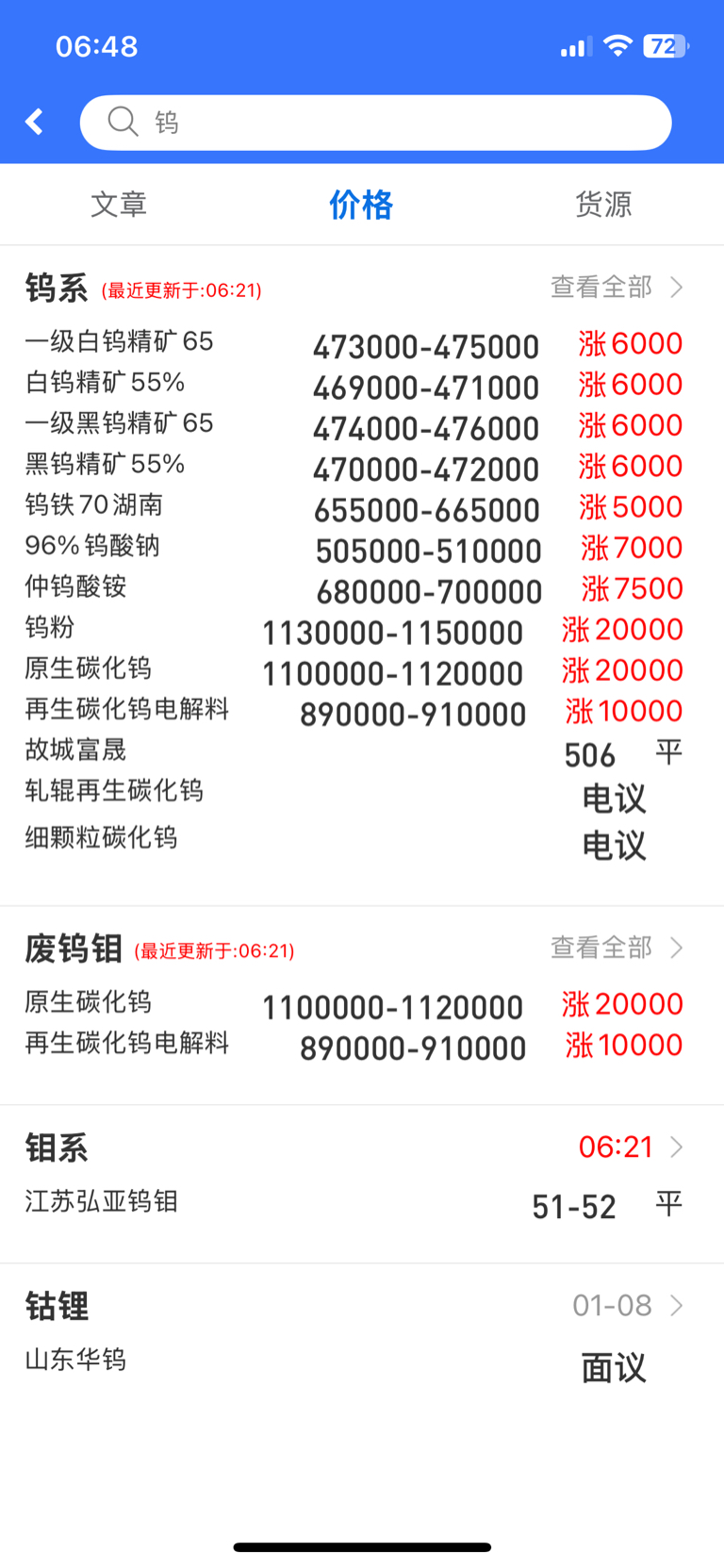 昨天钨价还是涨的