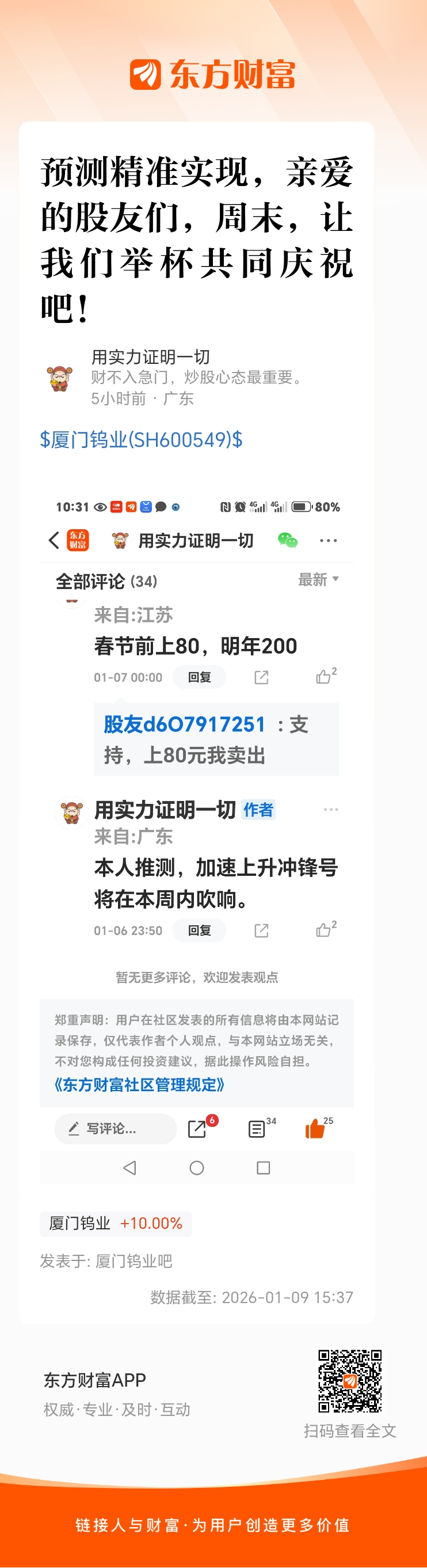 温馨提示: 1.根据《证券法》规定,禁止编造、传播虚假信息或者误导性信息,扰乱证券市场;2.用户在本社区发表的所有资料、言论等仅代表个人观点,与本网站立场无关,不对您构成任何投资建议。用户应基于自己的独立判断,自行决定证券投资并承担相应风险。《东方财富社区管理规定》