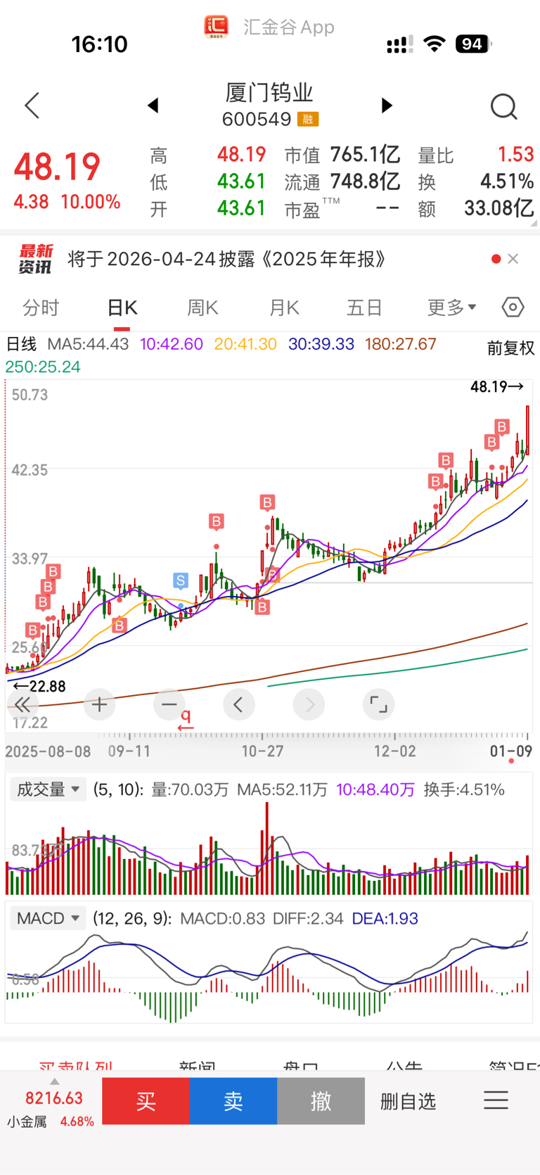 $厦门钨业(SH600549)$ 20块的时候满仓满融了夏钨,42以前只要有融资额度也打满了,坐等100开始分批出货,北方稀土这种没技术含量的公司都能2000亿,夏钨只会比他更高(另外建议
