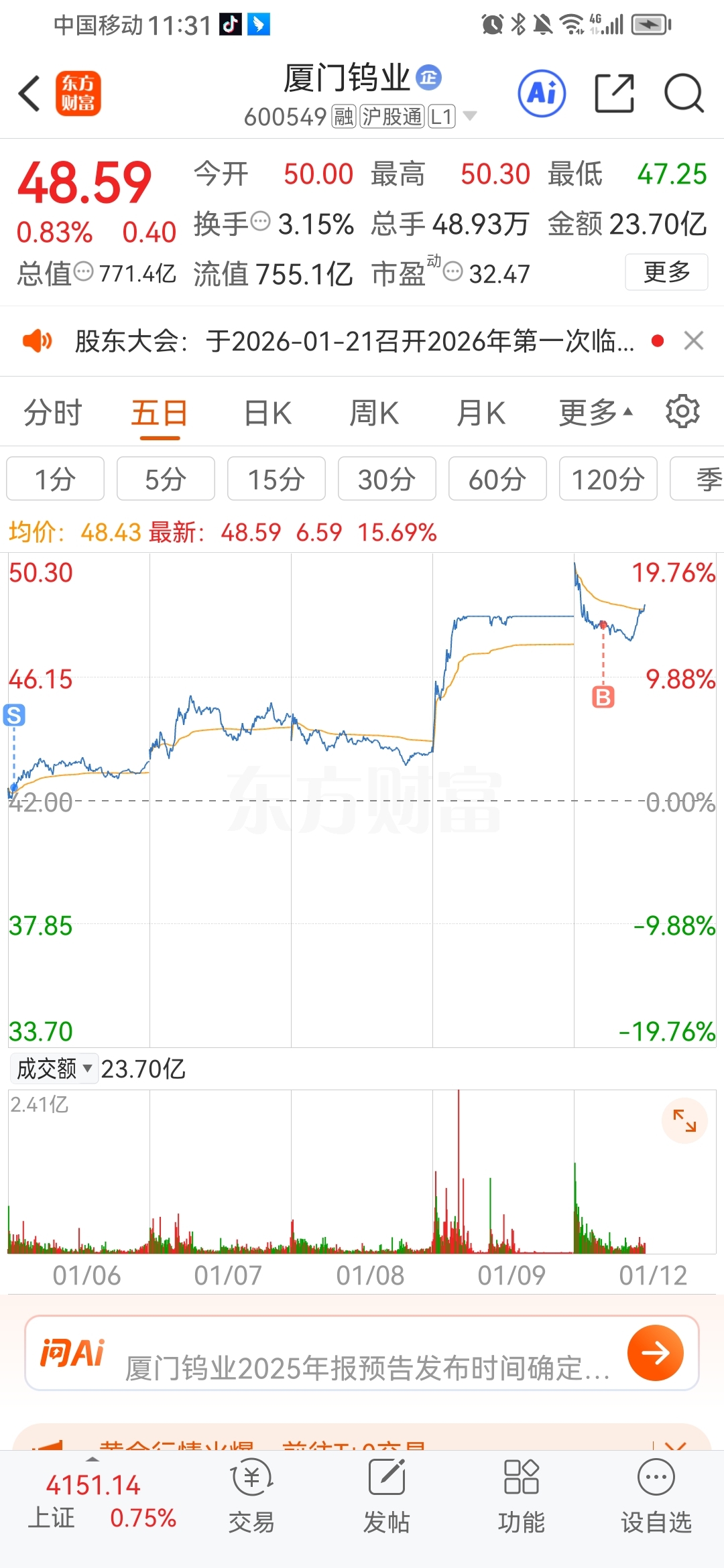 $厦门钨业(SH600549)$ 卖飞了,今天低吸接回来,明天做波段运营