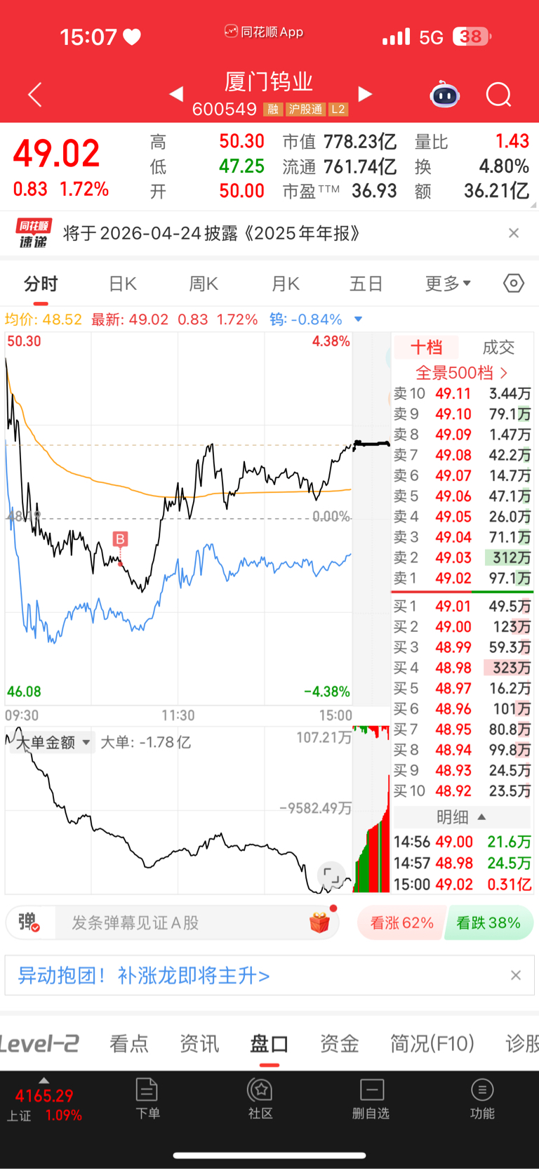 $厦门钨业(SH600549)$ 今天算洗盘了吧,明天能呼呼拉跟大阳线了不主力