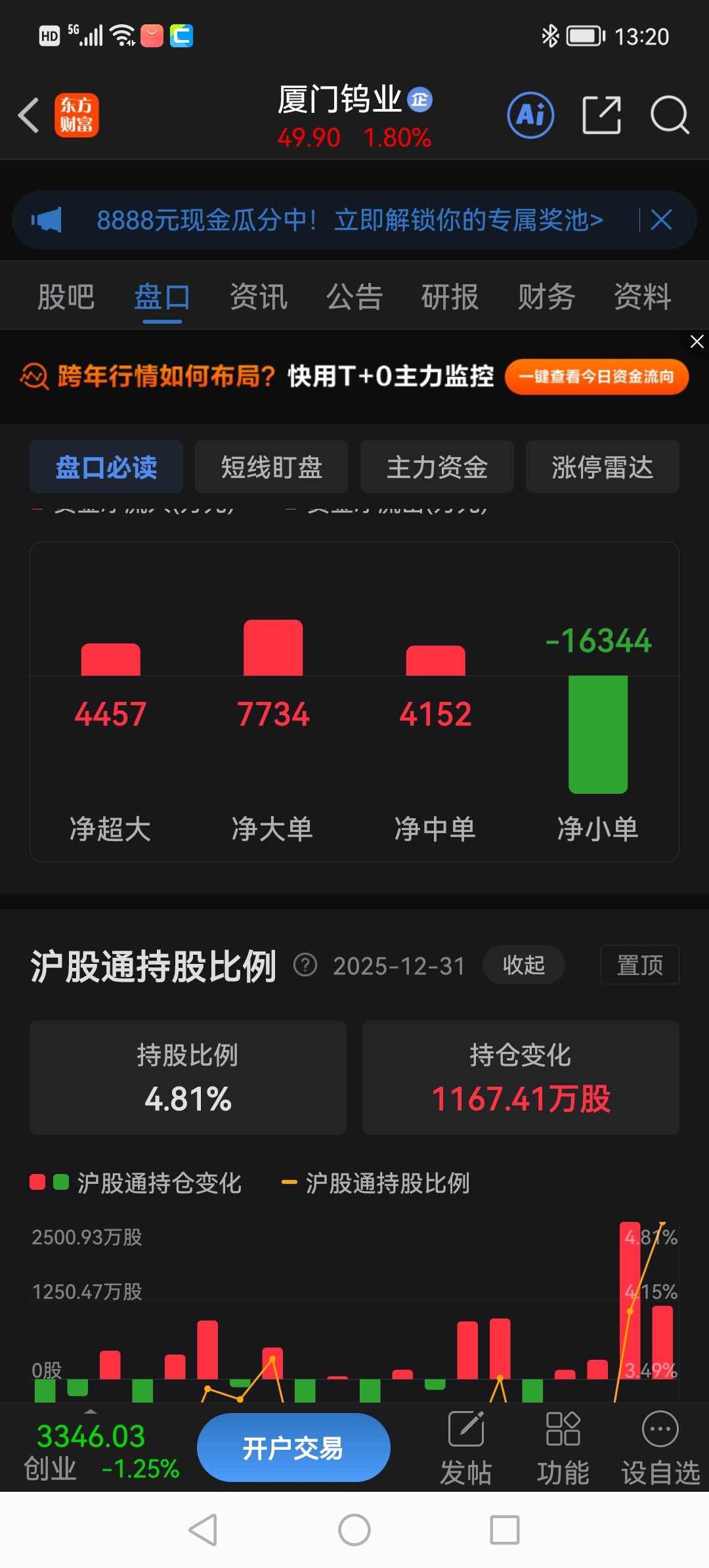 厦门钨业外资持仓增加1167万股。且行且珍惜,别让外资拿走筹码!