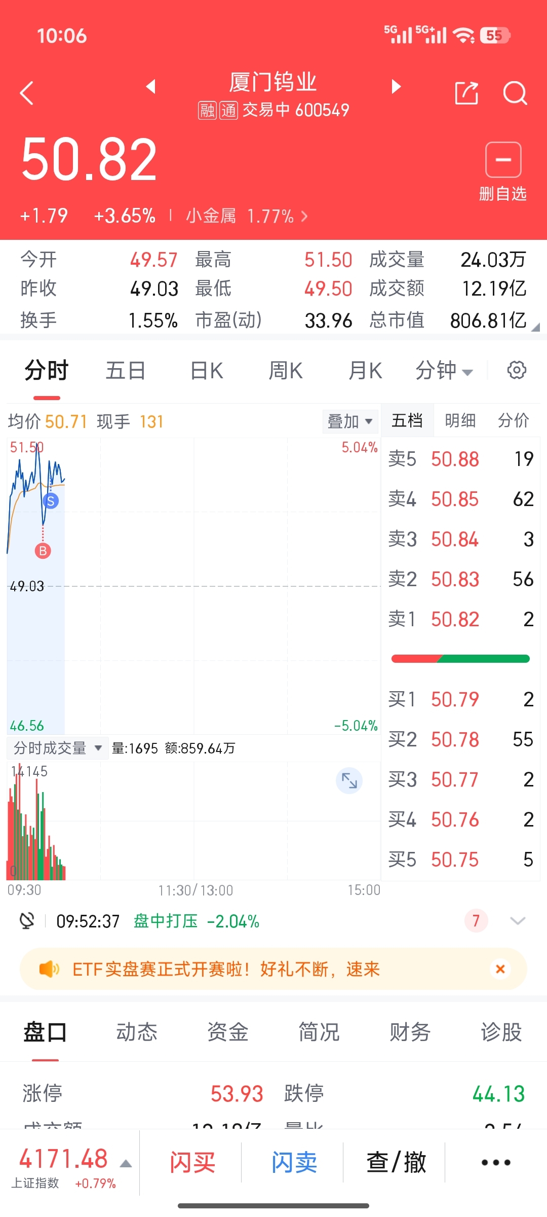 $厦门钨业(SH600549)$ 喜普大奔,今天难得T成功一次