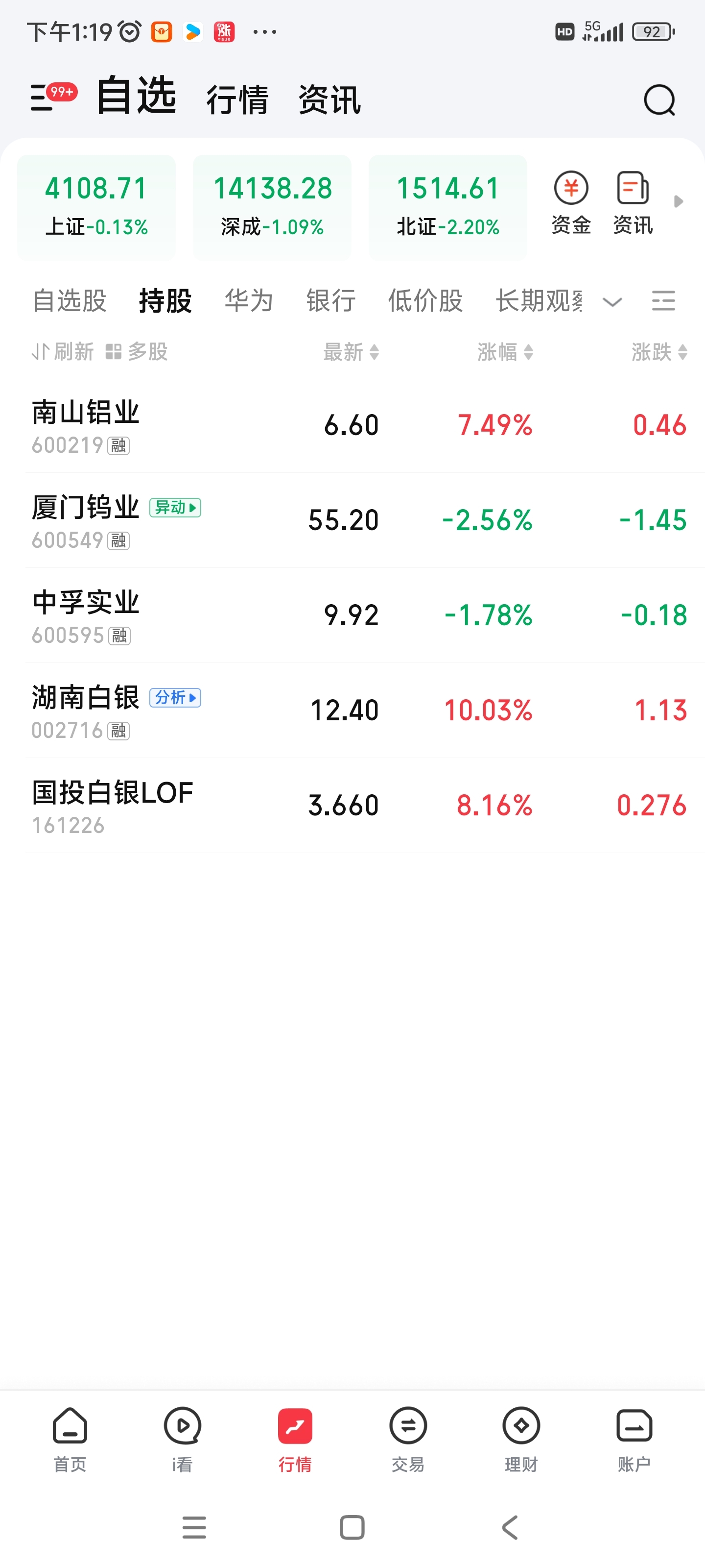 都卖在了最低点,南山铝业5个点卖了,湖南白银4个点卖了,厦门钨业不敢做t,中孚做