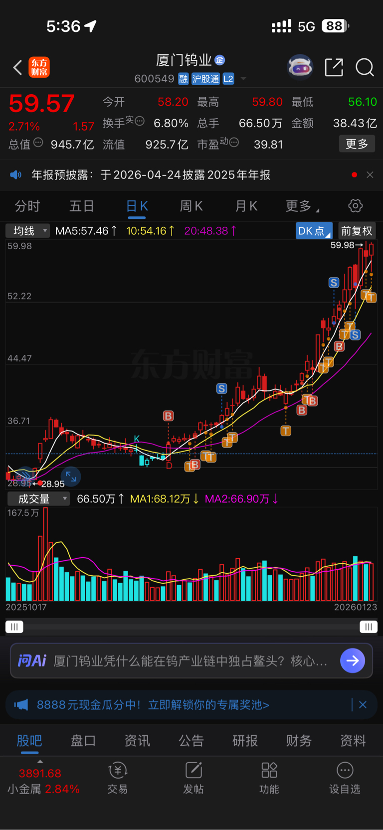 $厦门钨业(SH600549)$ 钨价又不掉,怕啥,偶尔做做T就行。