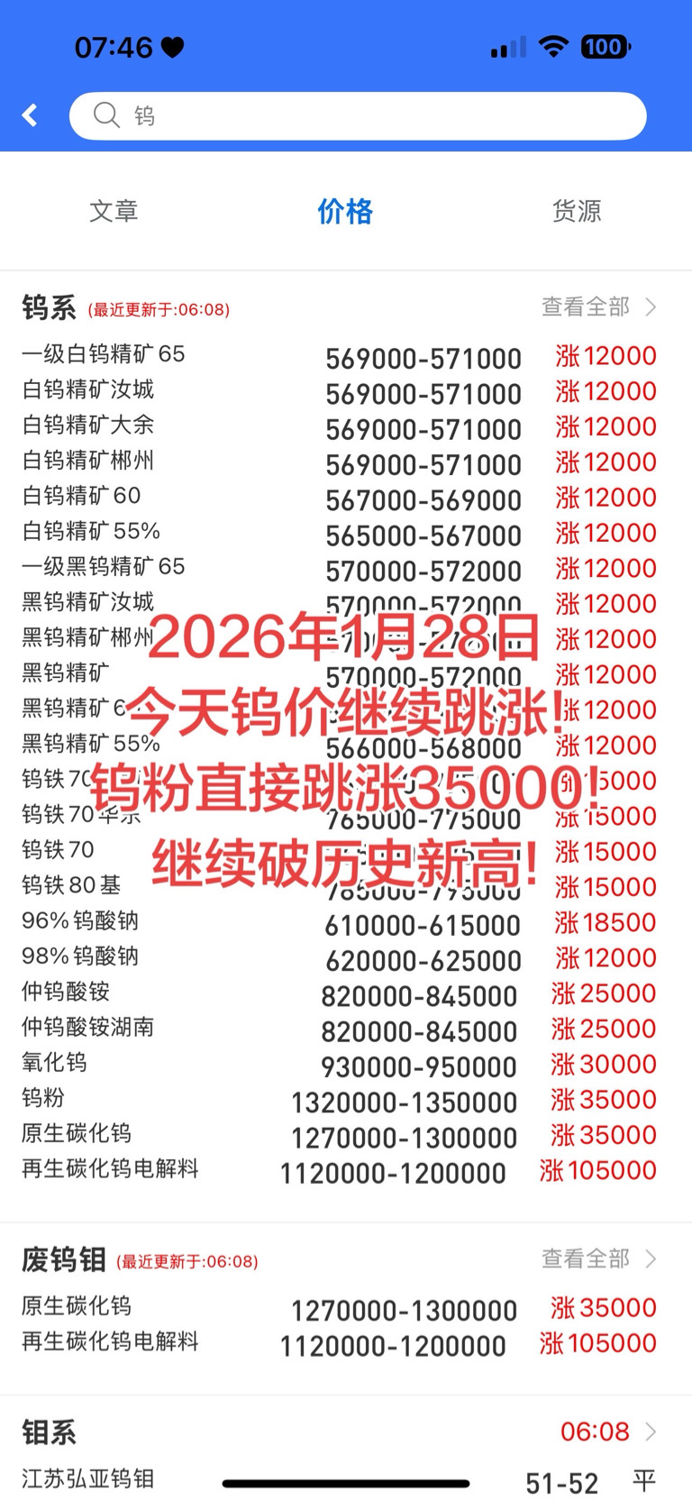 $厦门钨业(SH600549)$ 碳化钨直接一天涨10.5万,我咧个去啊