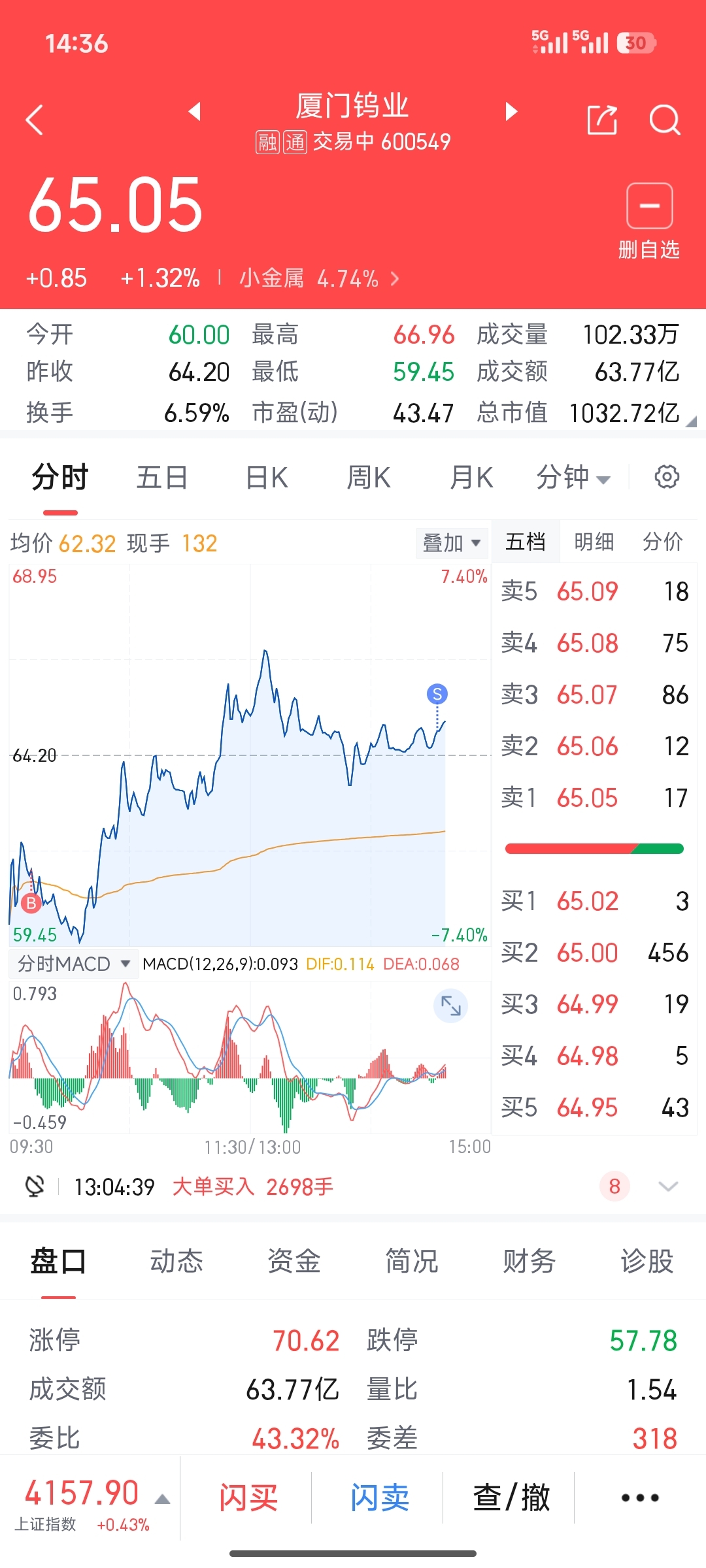 $厦门钨业(SH600549)$ 要求不高,满足了