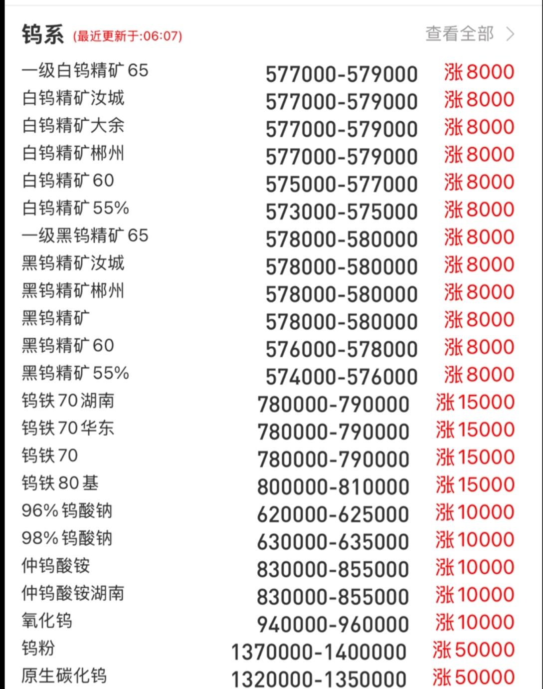 再次强调,钨价继续大涨,且全球供需有巨大缺口5000顿左右,谁也不要和趋势作对!