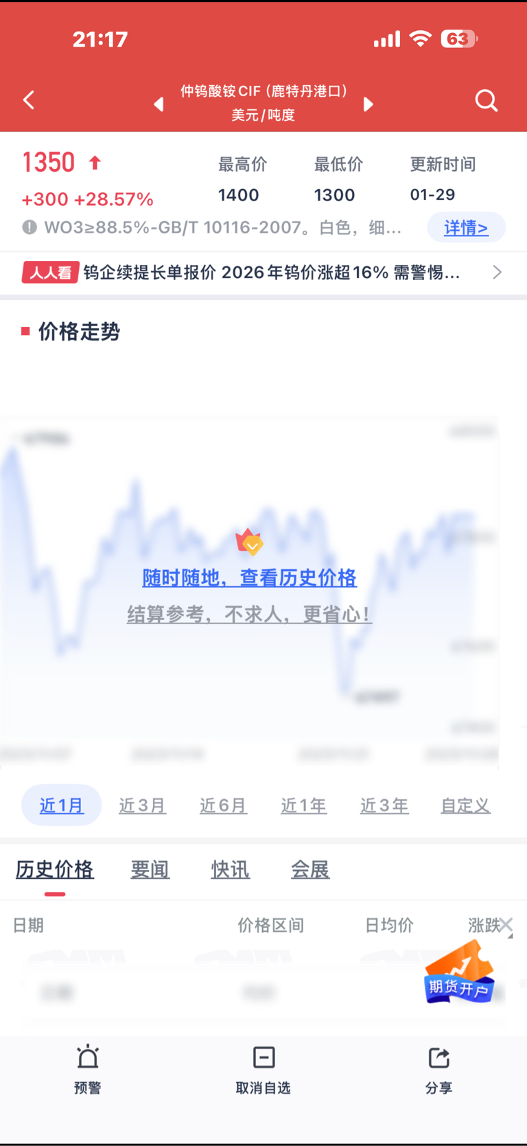$厦门钨业(SH600549)$ 国际市场仲钨酸铵暴涨28.57%