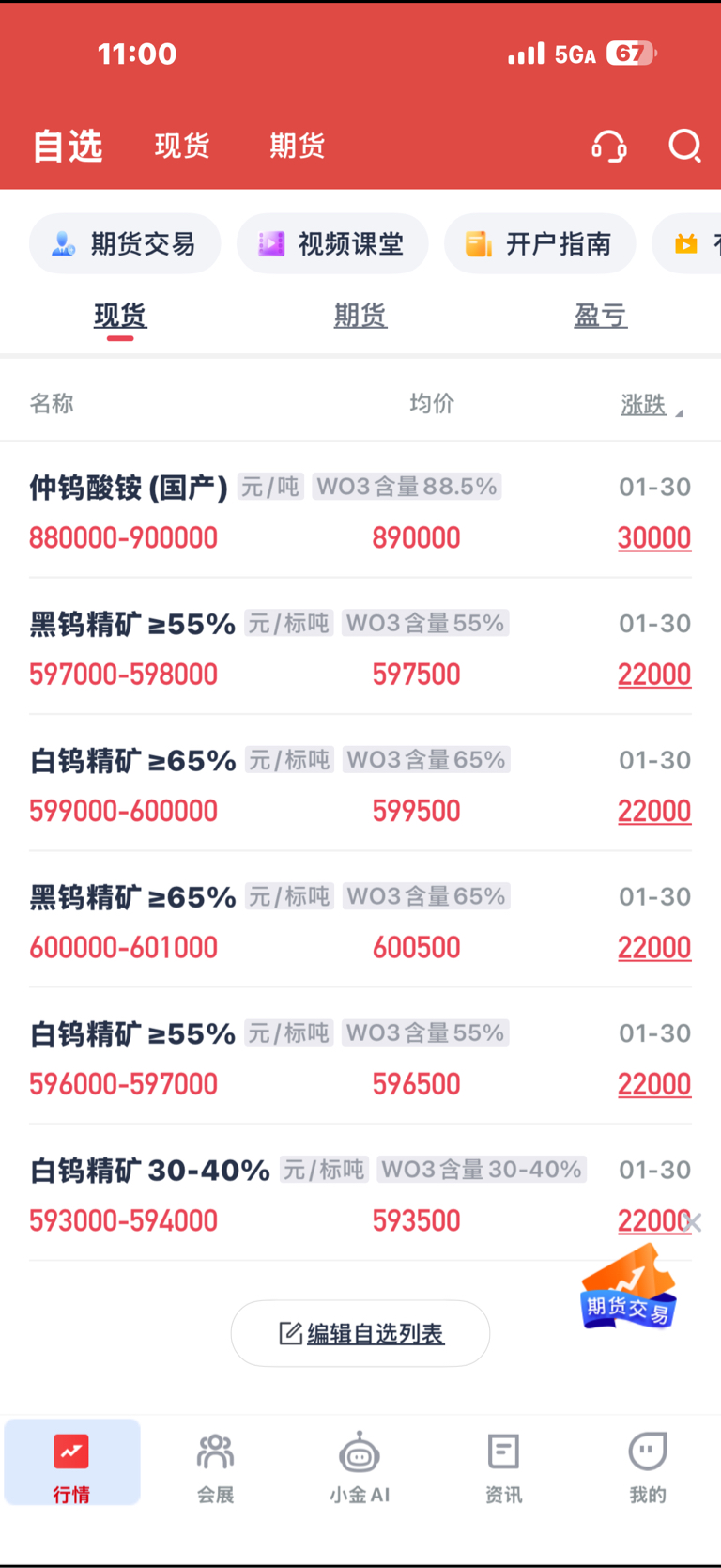 今天钨金继续上涨