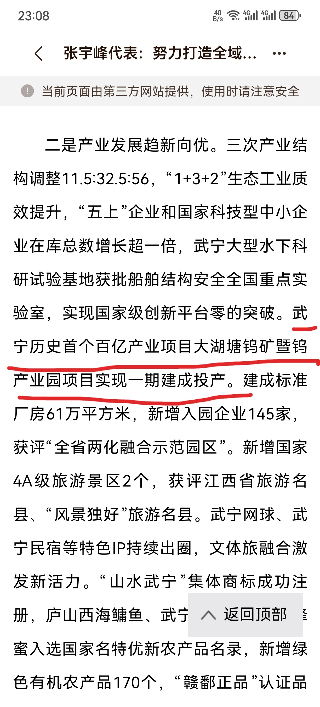 $厦门钨业(SH600549)$ 人民网专访武宁县长张宇峰,采访中县长表示:武宁历史首个百亿产业项目大湖塘钨矿暨钨产业园项目实现一期建成投产。