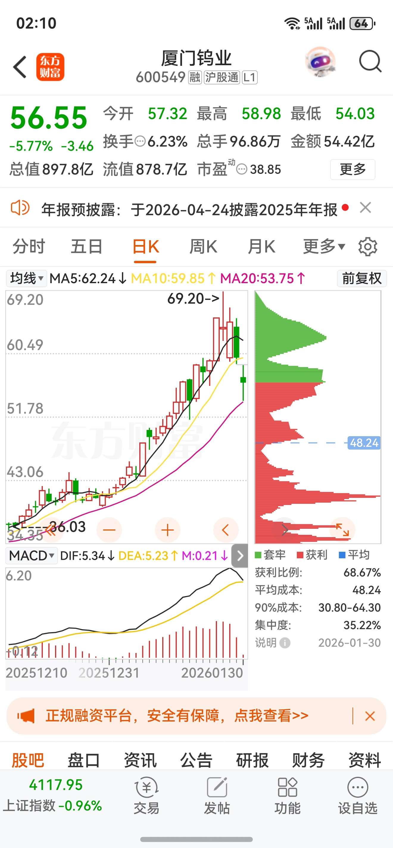 $厦门钨业(SH600549)$ 钨稀土属于国家战略品,跟着瞎起哄啥,大跌两天底部筹码增加0.22一直在买进,珍惜现在的机会吧兄弟们。