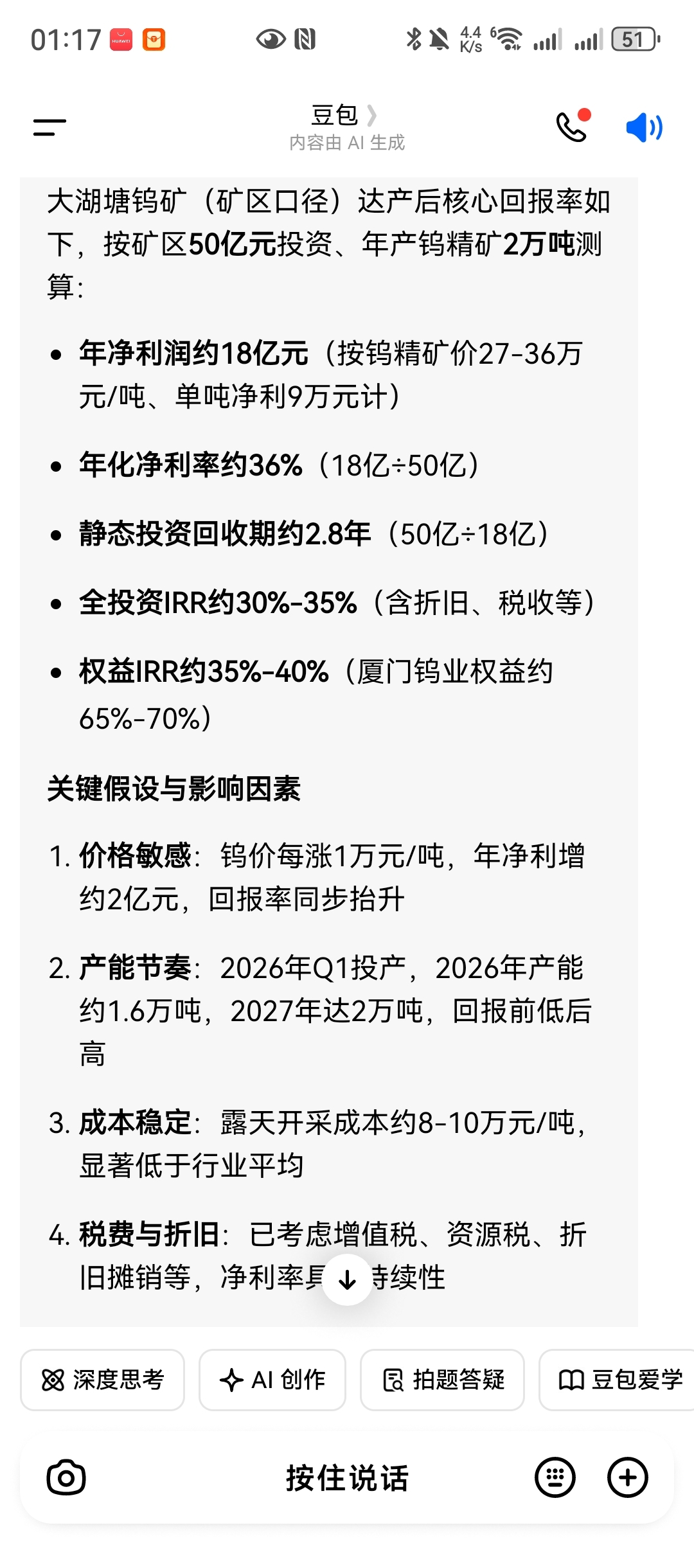 $厦门钨业(SH600549)$ 大塘湖钨矿,Q1开始产出了