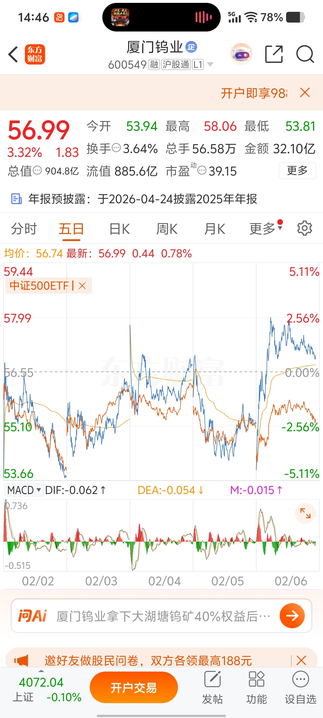 $厦门钨业(SH600549)$ 中证500的压制,气人啊