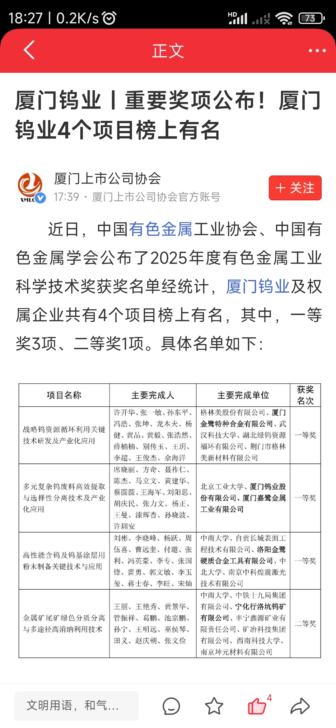 $厦门钨业(SH600549)$ 得了这奖有啥用,人家没得奖的也能涨停