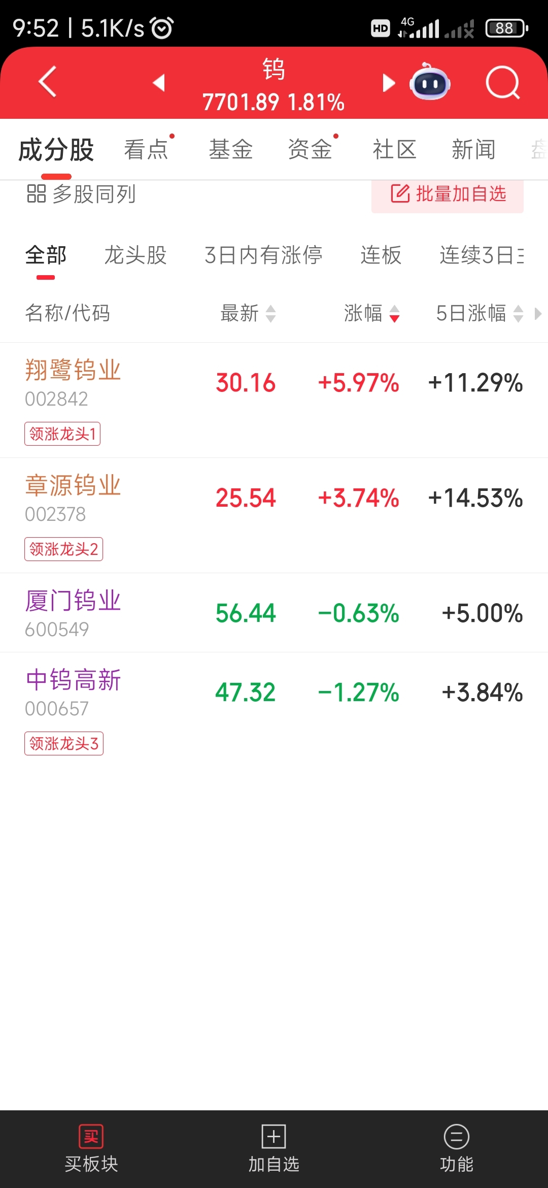 爷爷中钨涨得时候孙子不跟,爷爷跌的时候一定要比爷爷跌的快