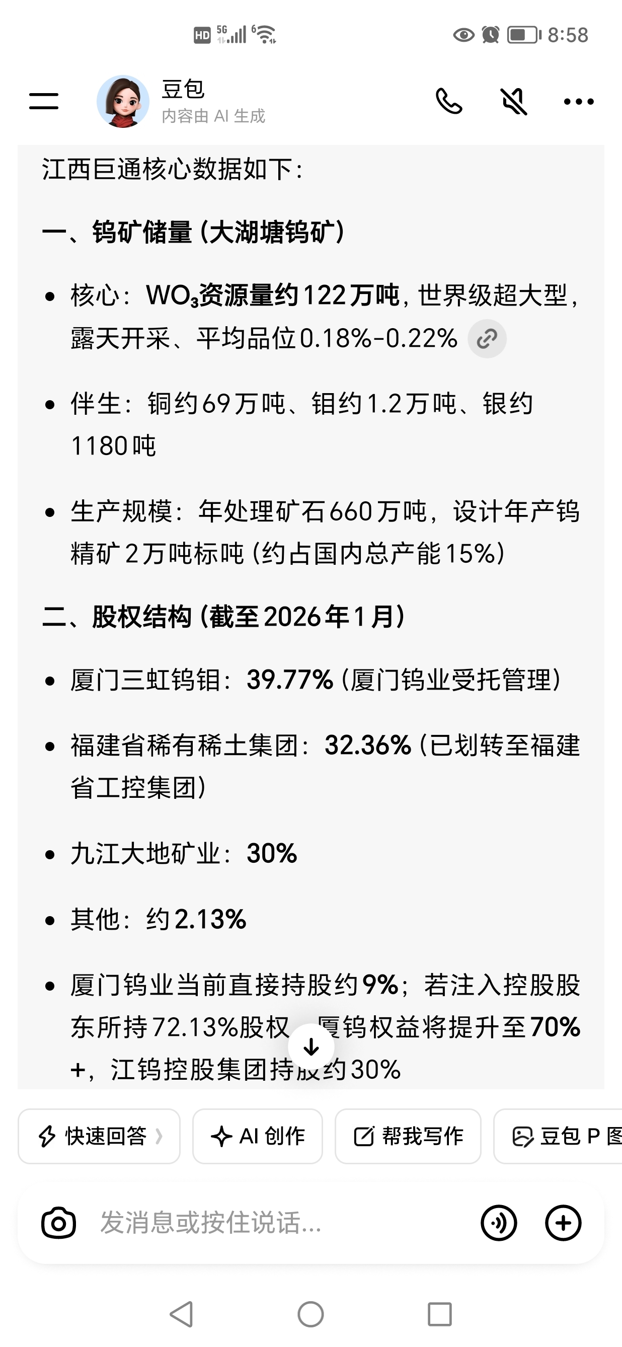 $厦门钨业(SH600549)$ 收购九江大地股权就等于收购了江西巨通大湖塘30%股权