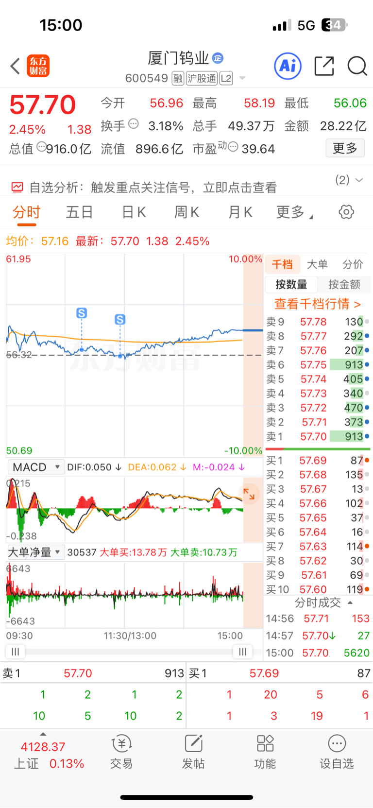 $厦门钨业(SH600549)$ 我难受啊