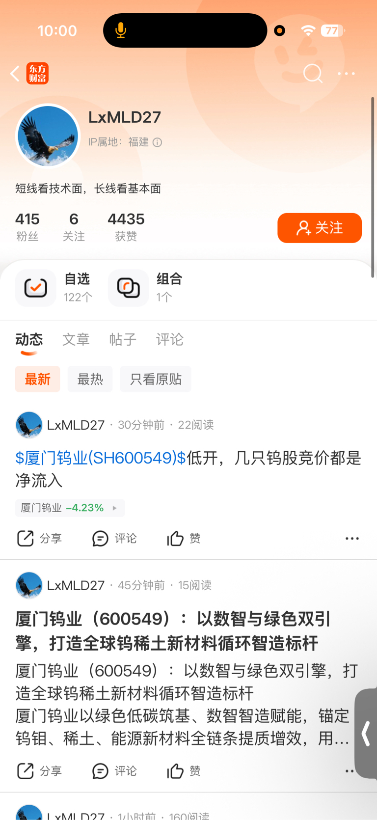 $厦门钨业(SH600549)$ 就这个人最喜欢无脑唱多 跌了也唱 不知道收了多少钱