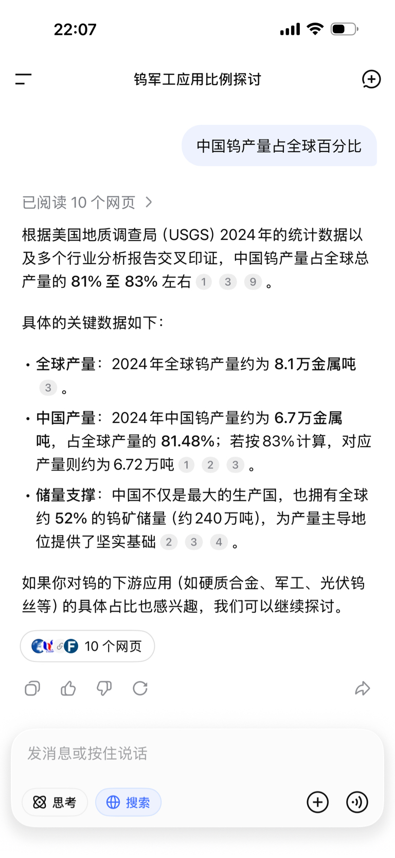 强烈建议禁止钨出口。每年军工用钨占了百分之二十左右,我国钨产量占世界总产量百分之