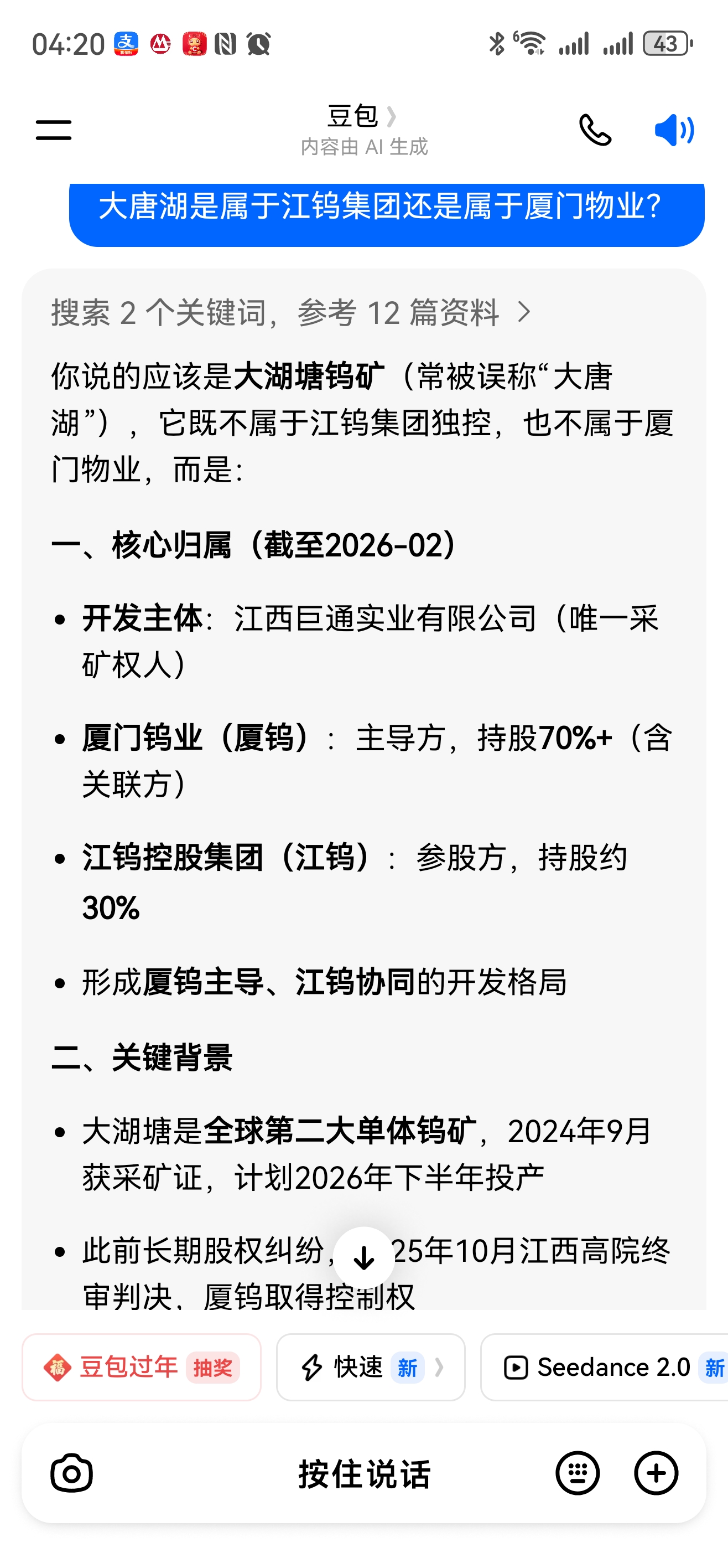 豆包大湖塘钨矿股权结构及注入预期