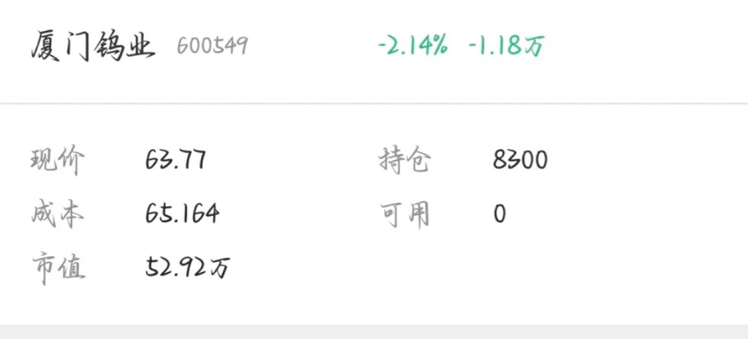 $厦门钨业(SH600549)$ 要求不高,明天能回本不