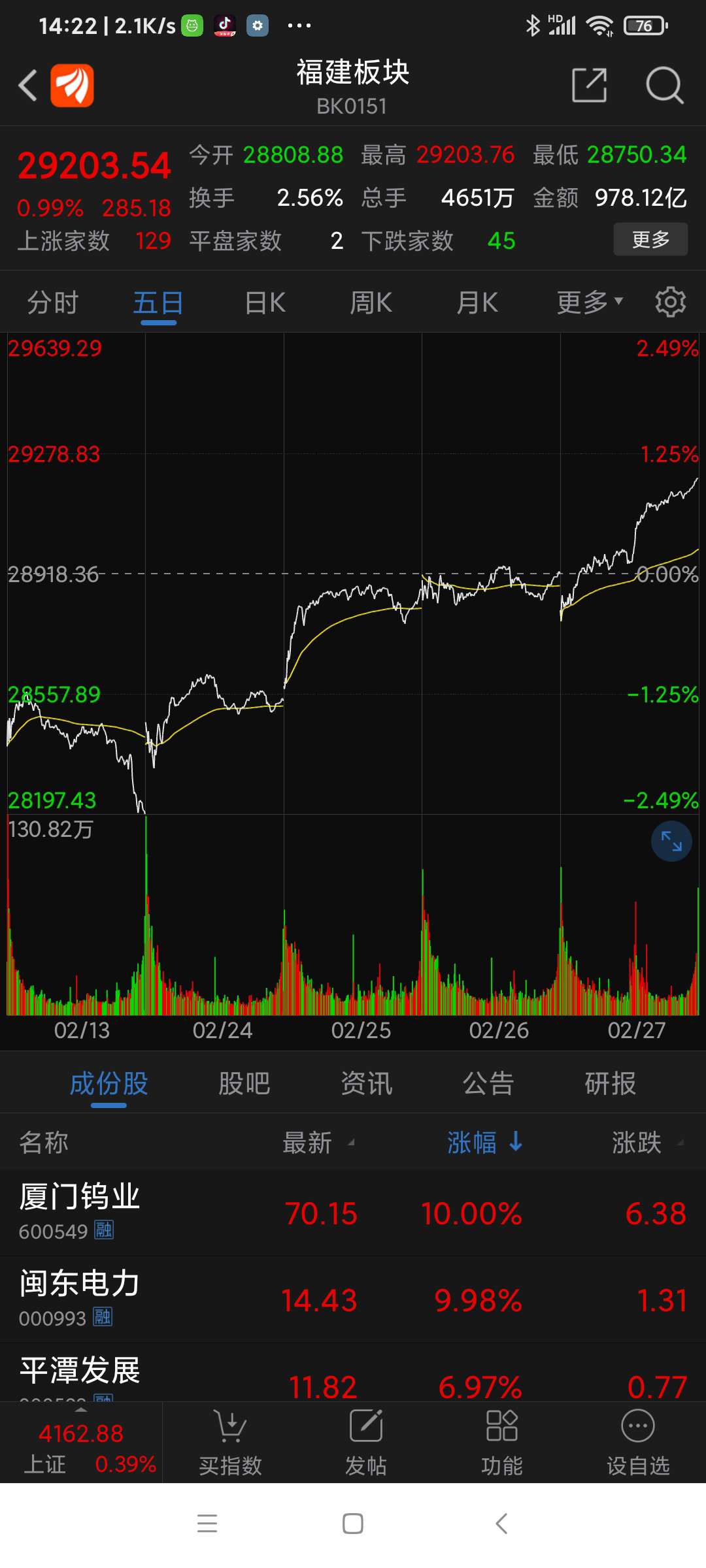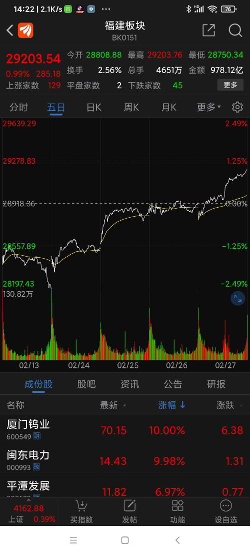 福建板块今年2月的表现。