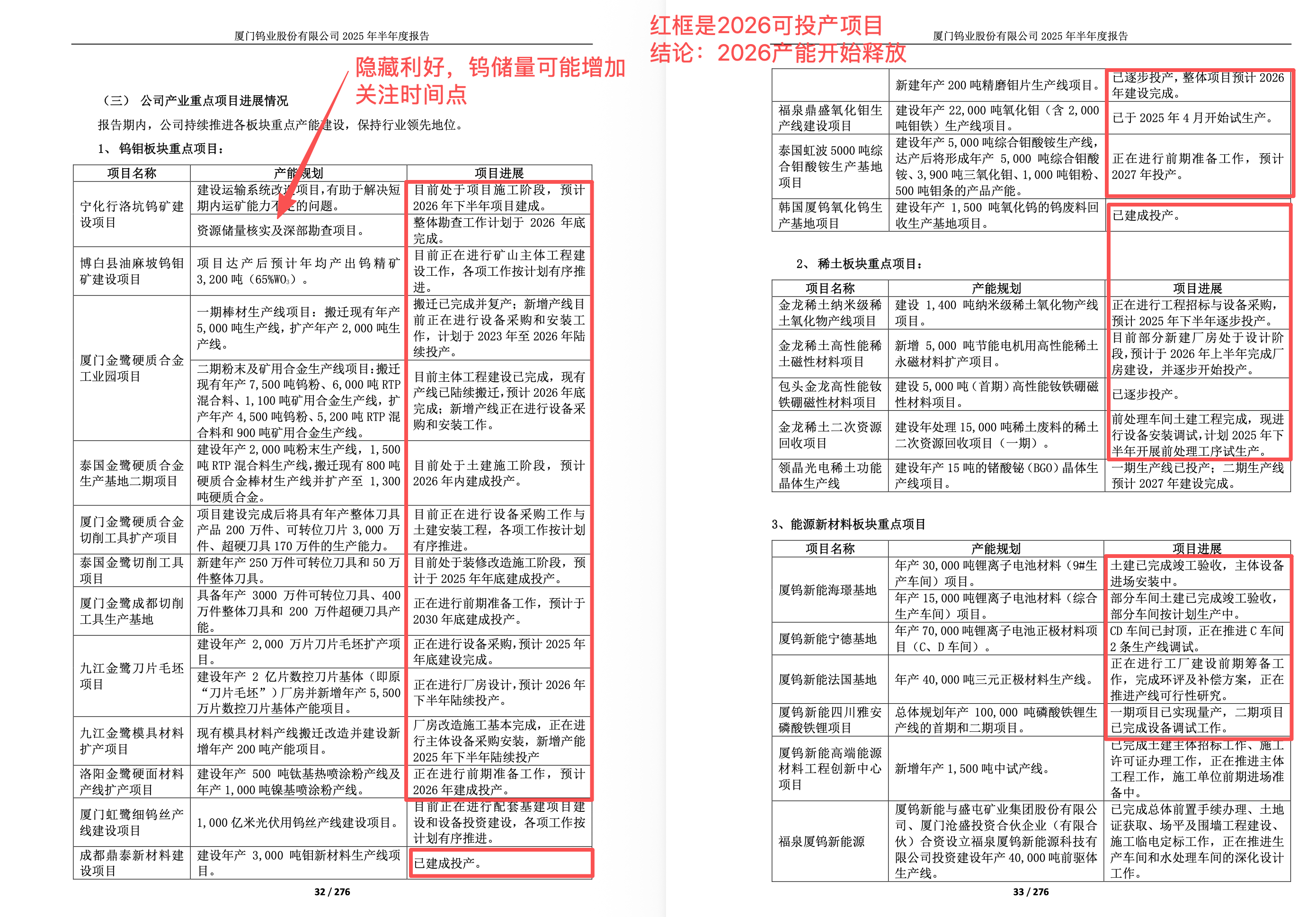 厦钨2026年可投产项目,来自2025中报,有个钨储量增加的隐藏利好