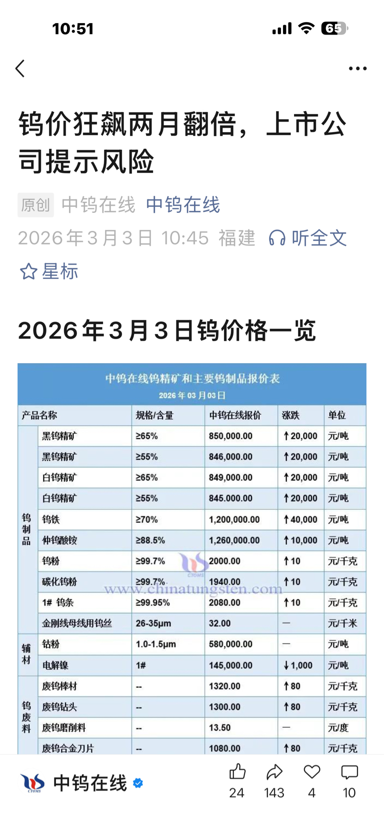 今天钨金继续上涨
