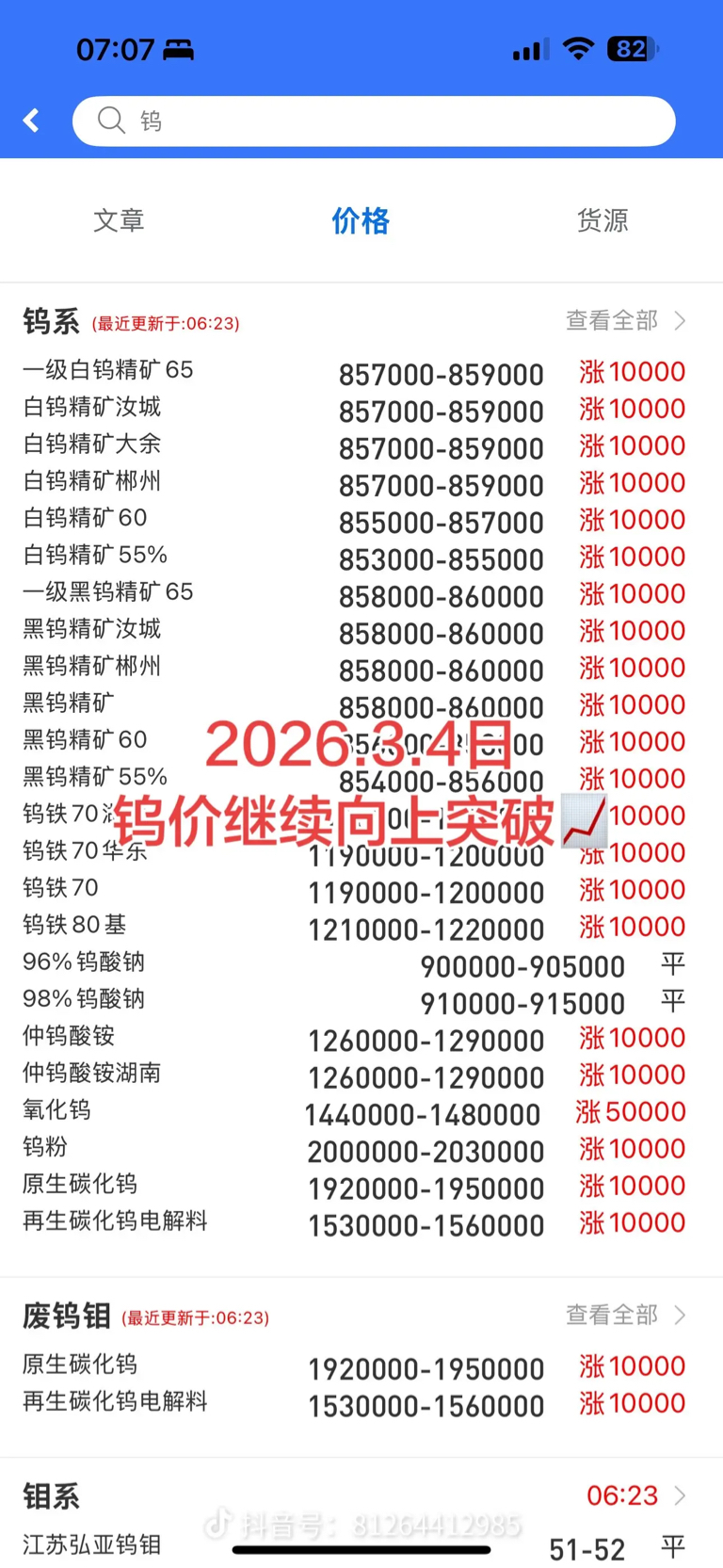 今日钨价