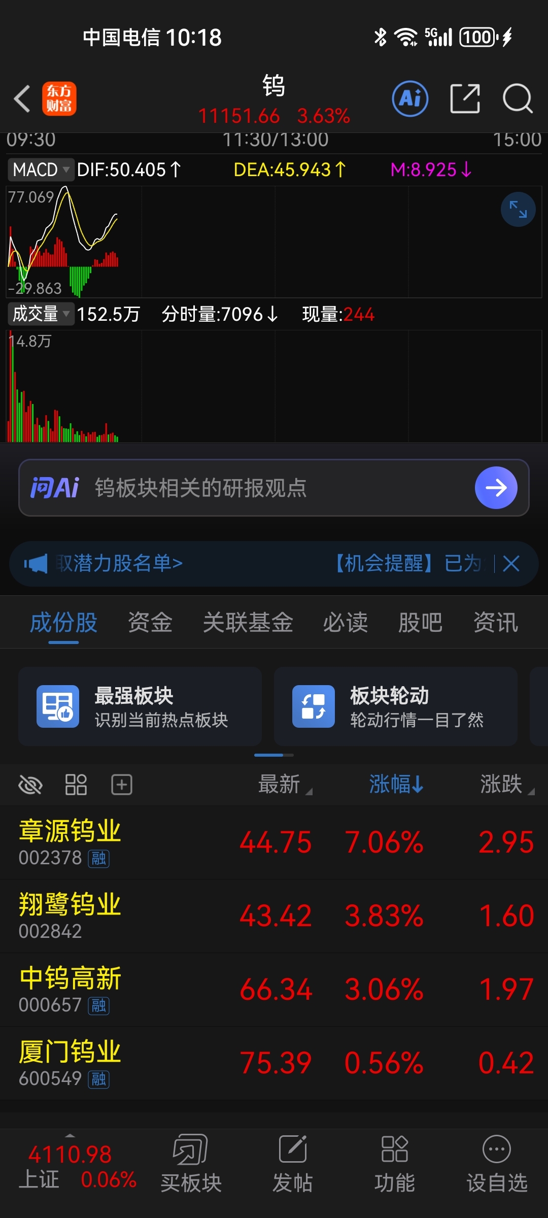 $厦门钨业(SH600549)$ 平一己之力,拉低了整个钨板块涨副。