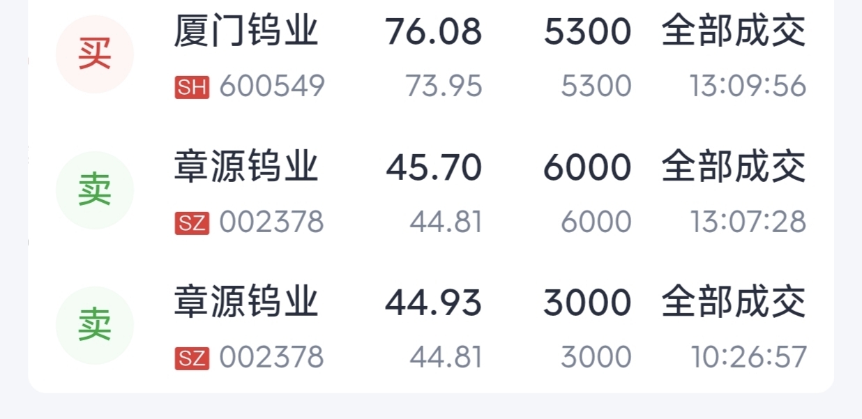 $厦门钨业(SH600549)$ 今天再补一手。完成本周操作。厦门钨业总仓位站上90%。下周五前大概率全仓单吊。静候佳音。没事,出力随便出,你出我就补。直到无仓可补。