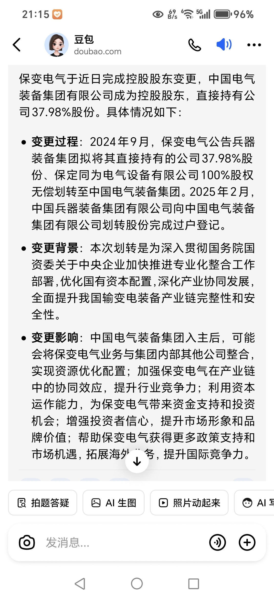 $保变电气(SH600550)$ 有些人不相信在质疑,这是我在豆包问出来了,不相信的人可以去查,百度也能查到。