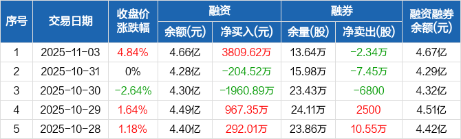 保变电气:融资净买入3809.62万元,融资余额4.66亿元(11-03)