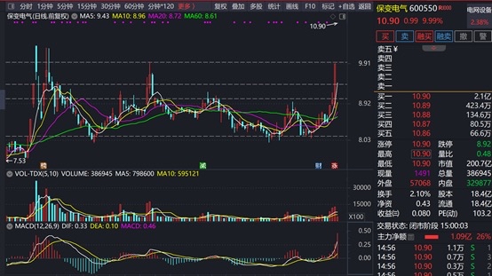 $保变电气(SH600550)$ 突破横盘震荡区后今日涨停,到达了之前划线的压力位置,均线多头排列,明后天就看能否继续突破这里,如果能横向震荡也问题不大,继续持股观察就可以。如果跌破9.41的位置,可以降低一些仓位出来。新建仓建议沿5日均线位置尝试,不建议盲目追高。