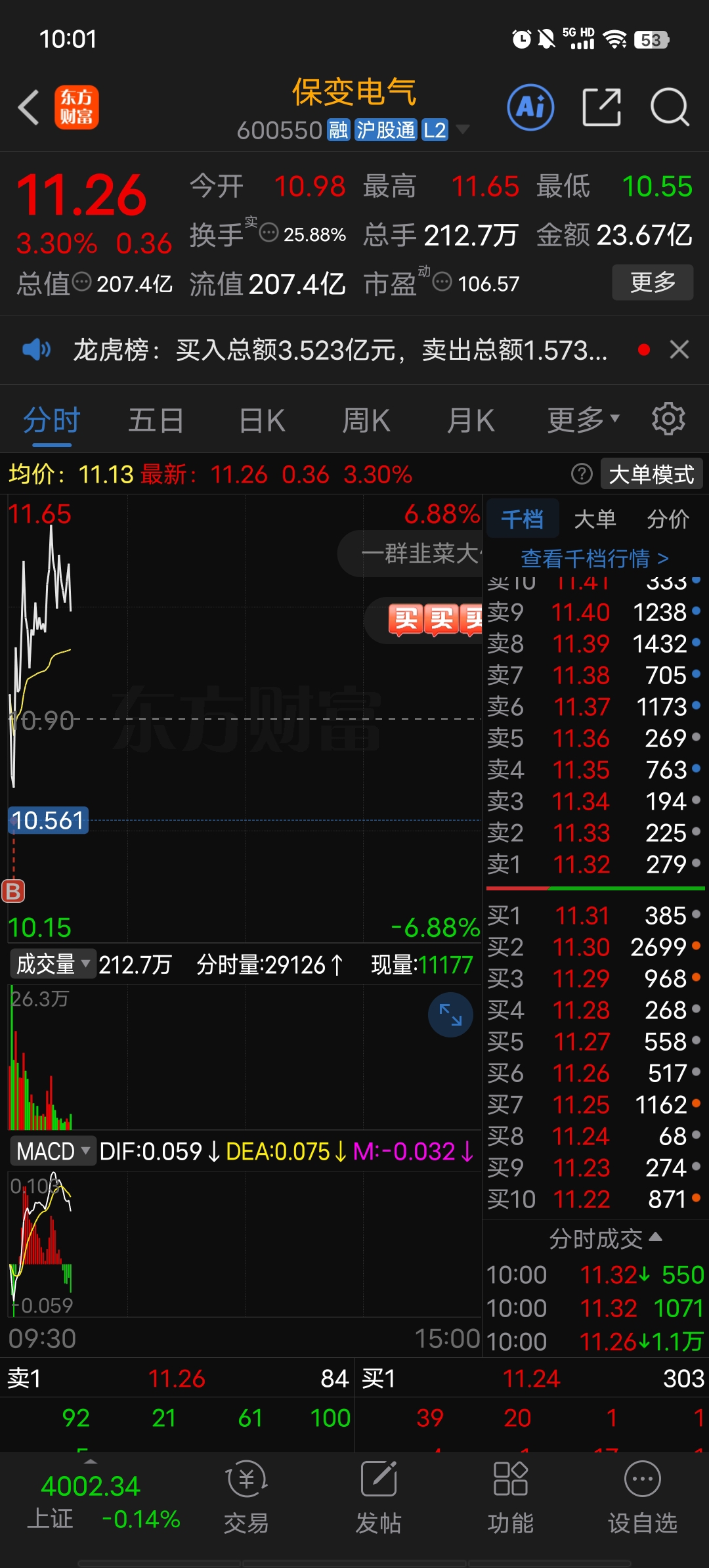 $保变电气(SH600550)$ 这是我最佩服自己的一次,差一分最低价!!!
