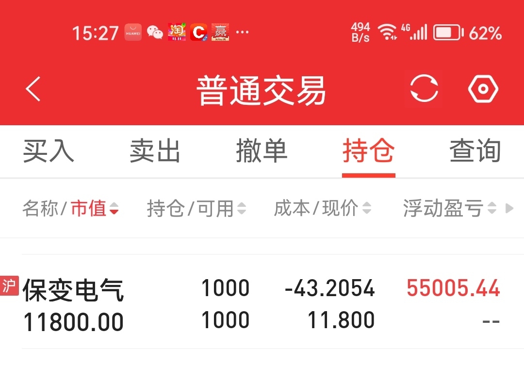 拿了近一年的保变今天差不多都出城了,还剩1000股。小赚了5.5w,还行吧。感谢
