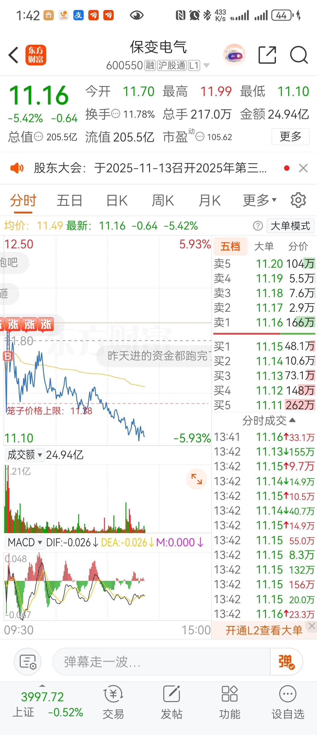 $保变电气(SH600550)$ 求放过,我没赚你一分钱呐,纯纯韭菜。