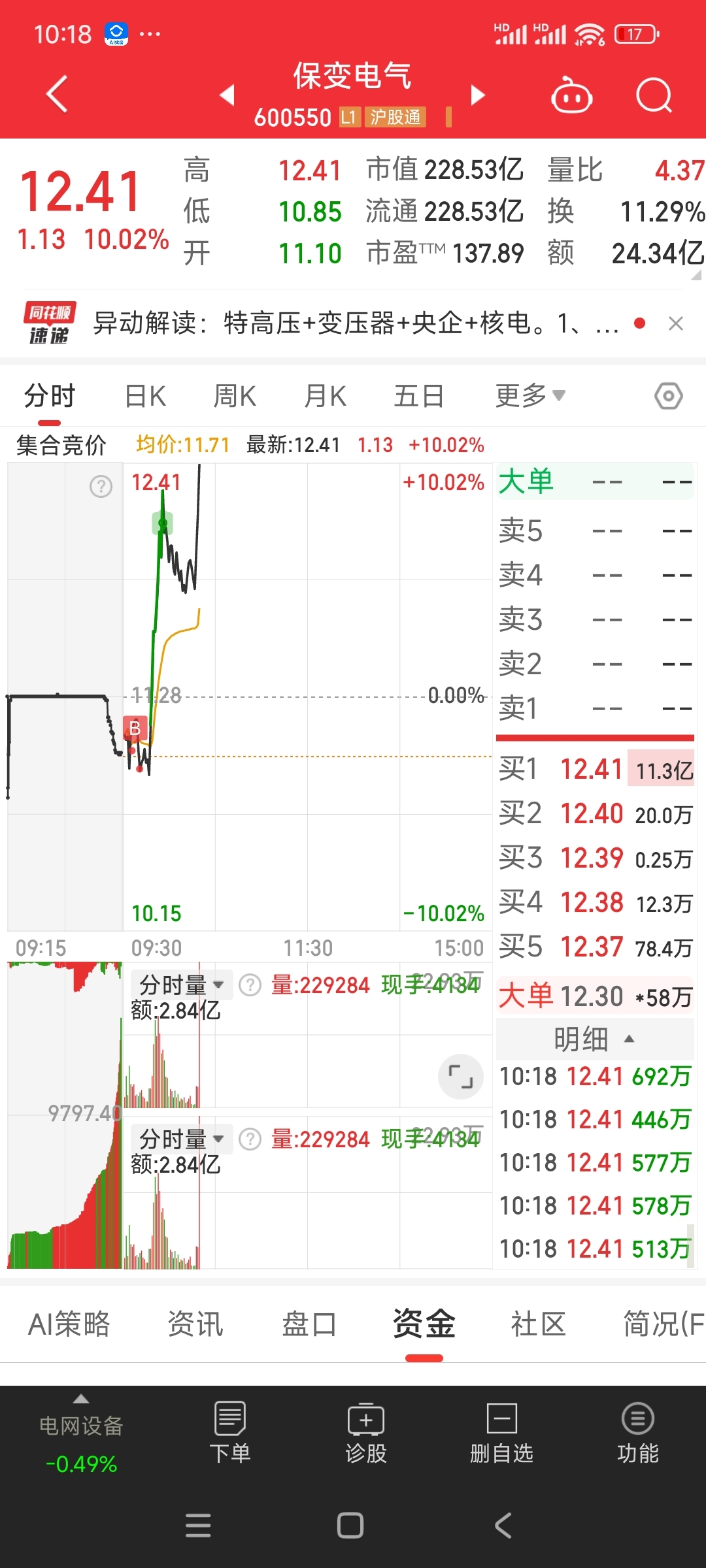 $保变电气(SH600550)$ 今天不封板,明天怕是要低开