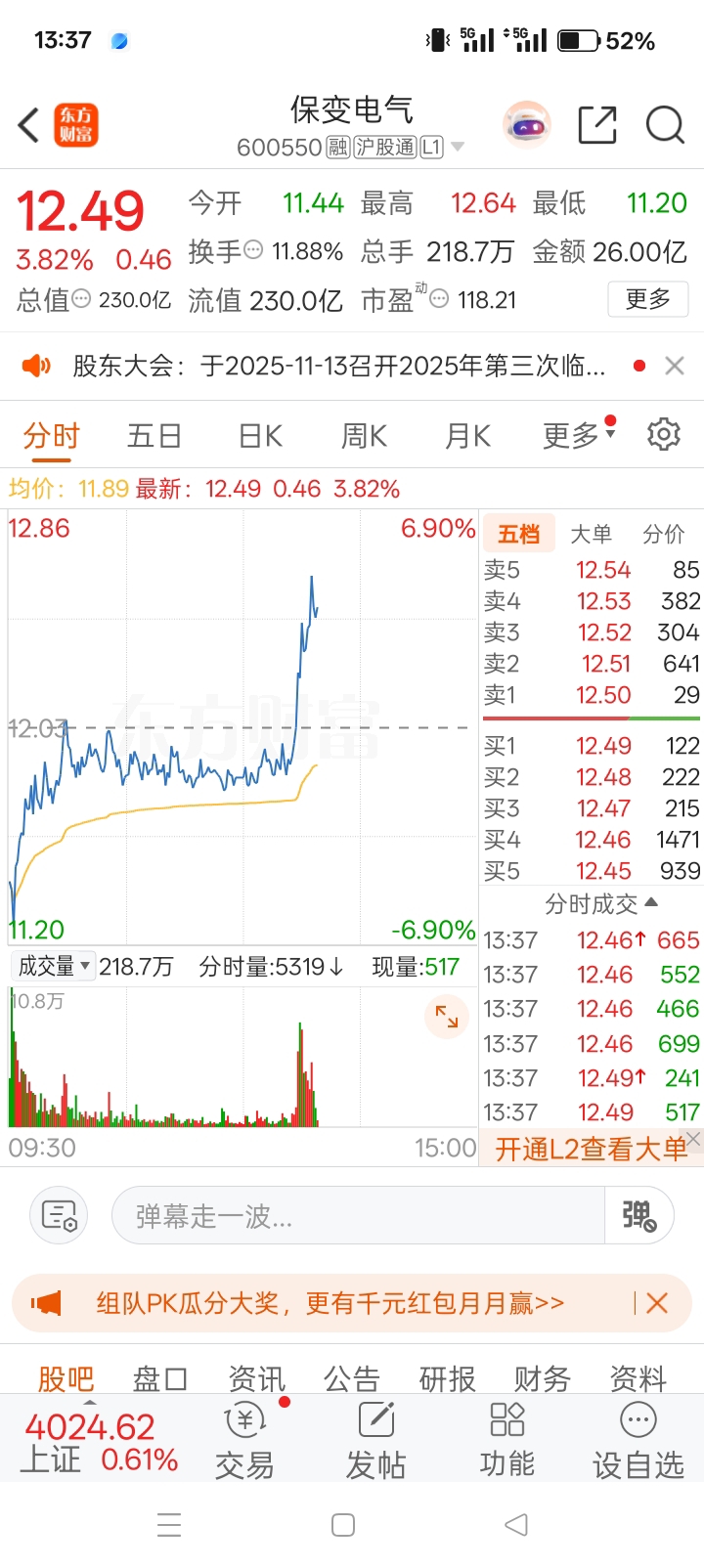$保变电气(SH600550)$ 搞起,强者恒强。今天就神州和保变,吃香喝辣