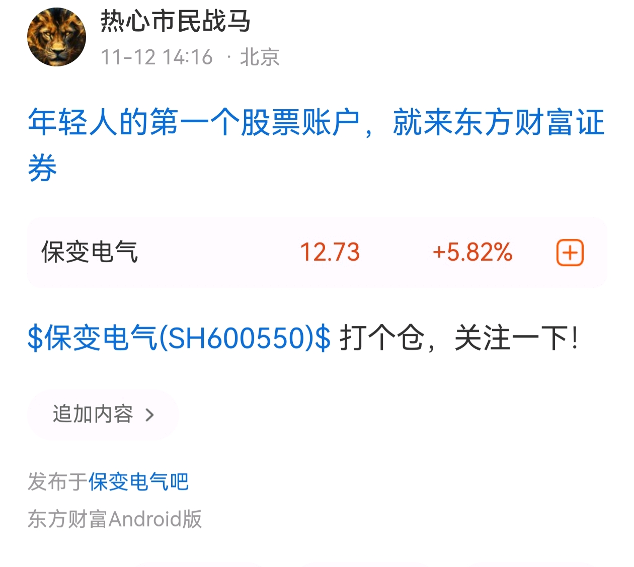$保变电气(SH600550)$ 也起来了,不多说了,自己看着操作吧!
