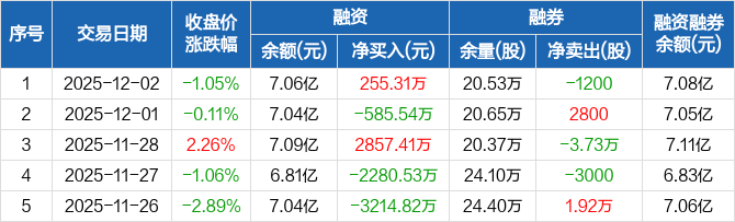 保变电气:融资净买入255.31万元,融资余额7.06亿元(12-02)