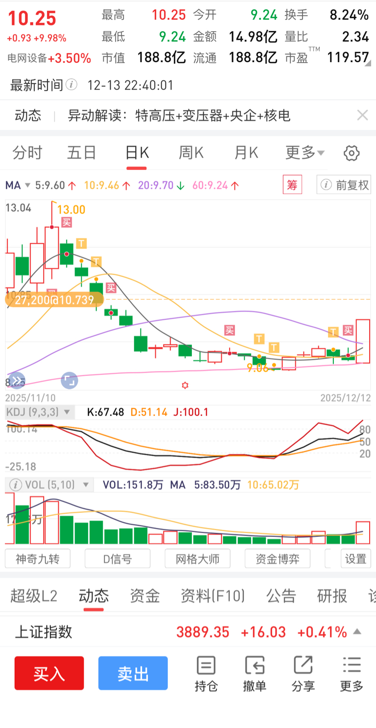 $保变电气(SH600550)$ 最高点入的,一路买t,快解套了,主力周一涨五个点我就回本了,谢谢,解套我也不卖,不到20不走