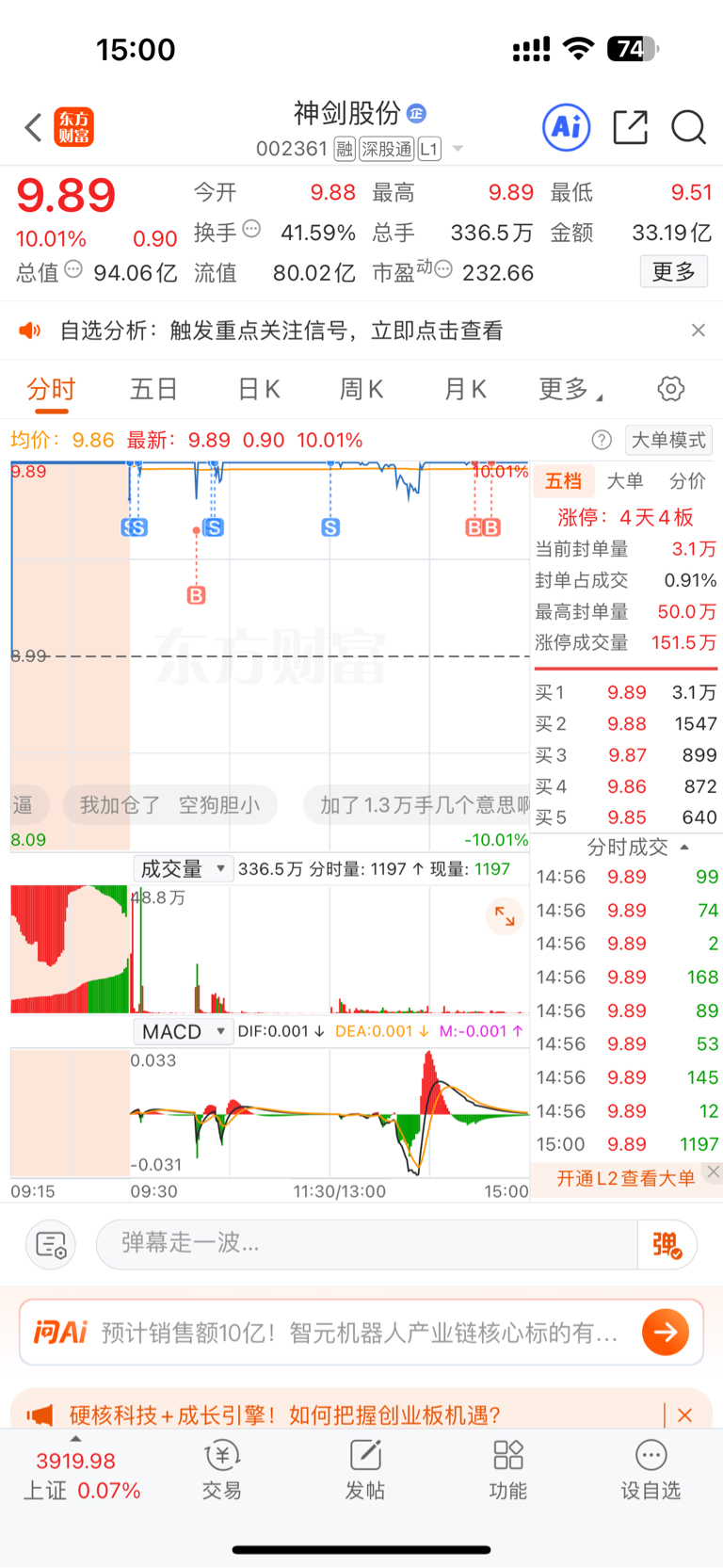 神剑股份吃太饱做t减了半仓看见保变放量突破立马建半仓看看明天有没有肉吃