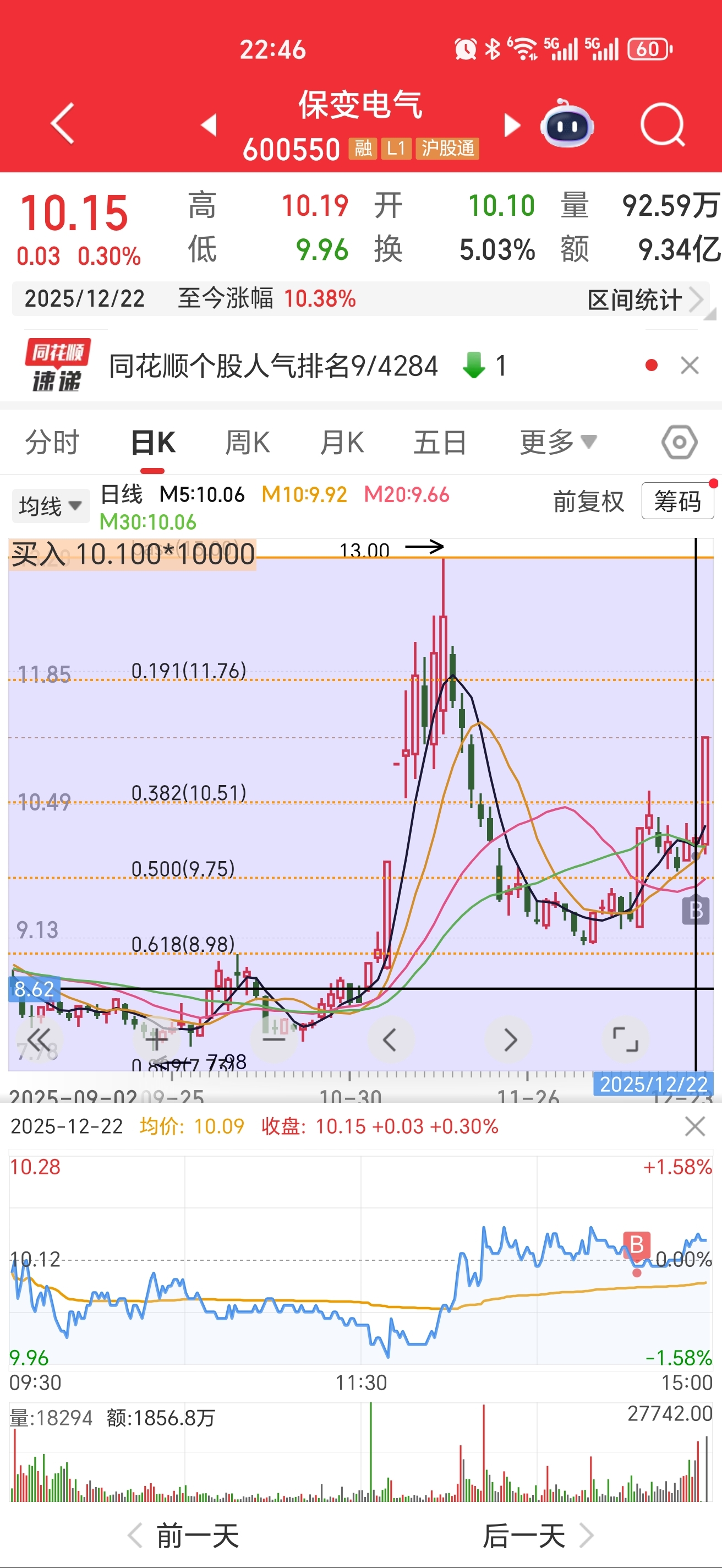 $保变电气(SH600550)$ 纯属运气