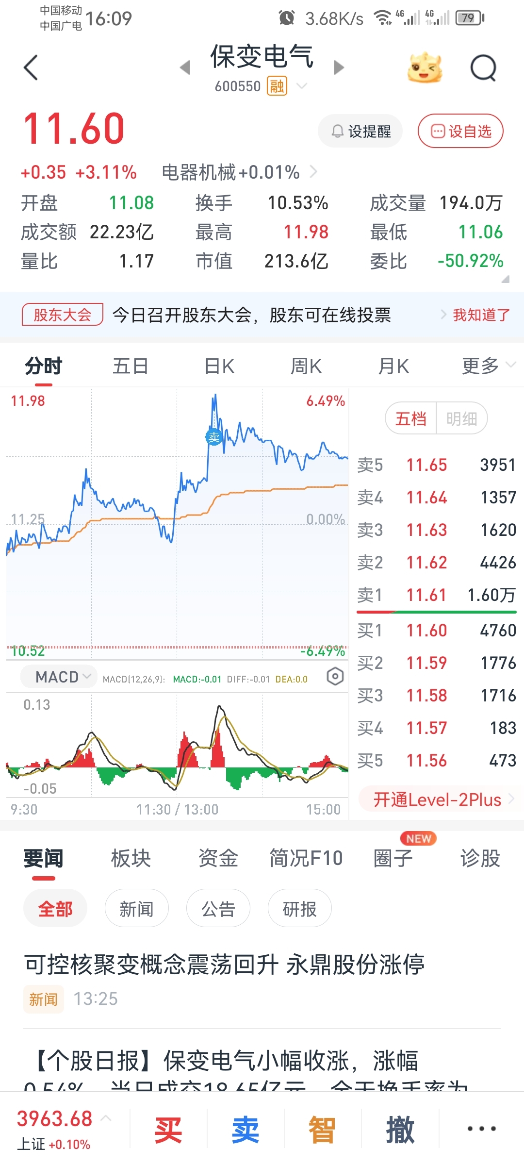 $保变电气(SH600550)$ 11.94先出了,下周调整下来再进去搞一波,一个月了,12.2个点的收益,虽然不符合预期,但看到15元,下周应该会给机会进去的!