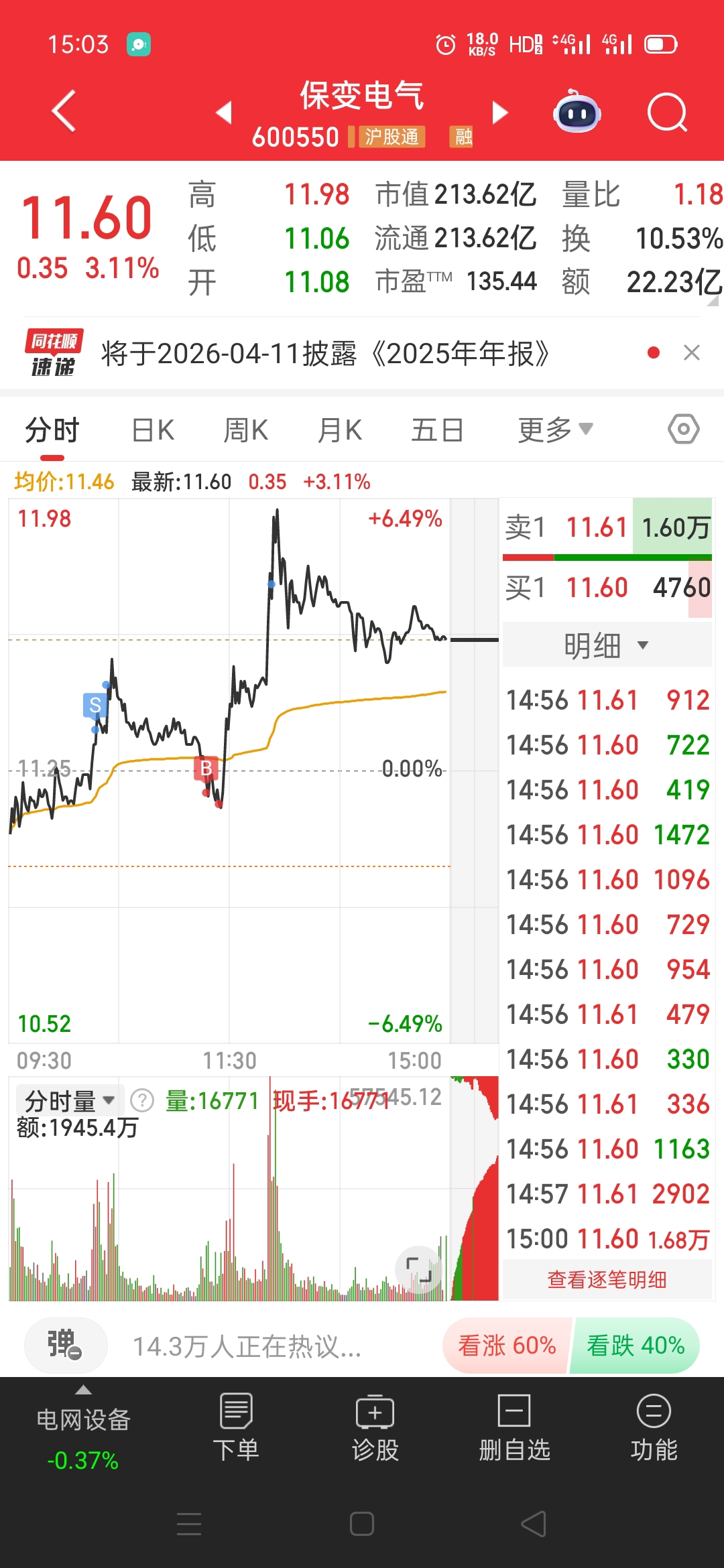 今天做T+0了,守住利润5%。
