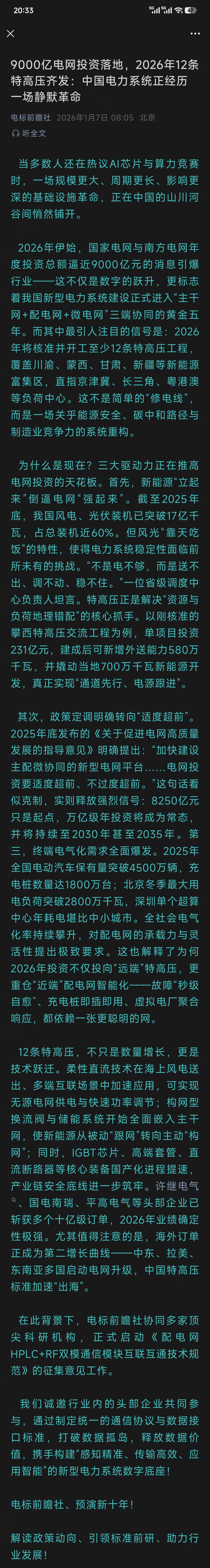 9000亿电网投资落地,12条特高压齐发。订单排满2026,前景可以!