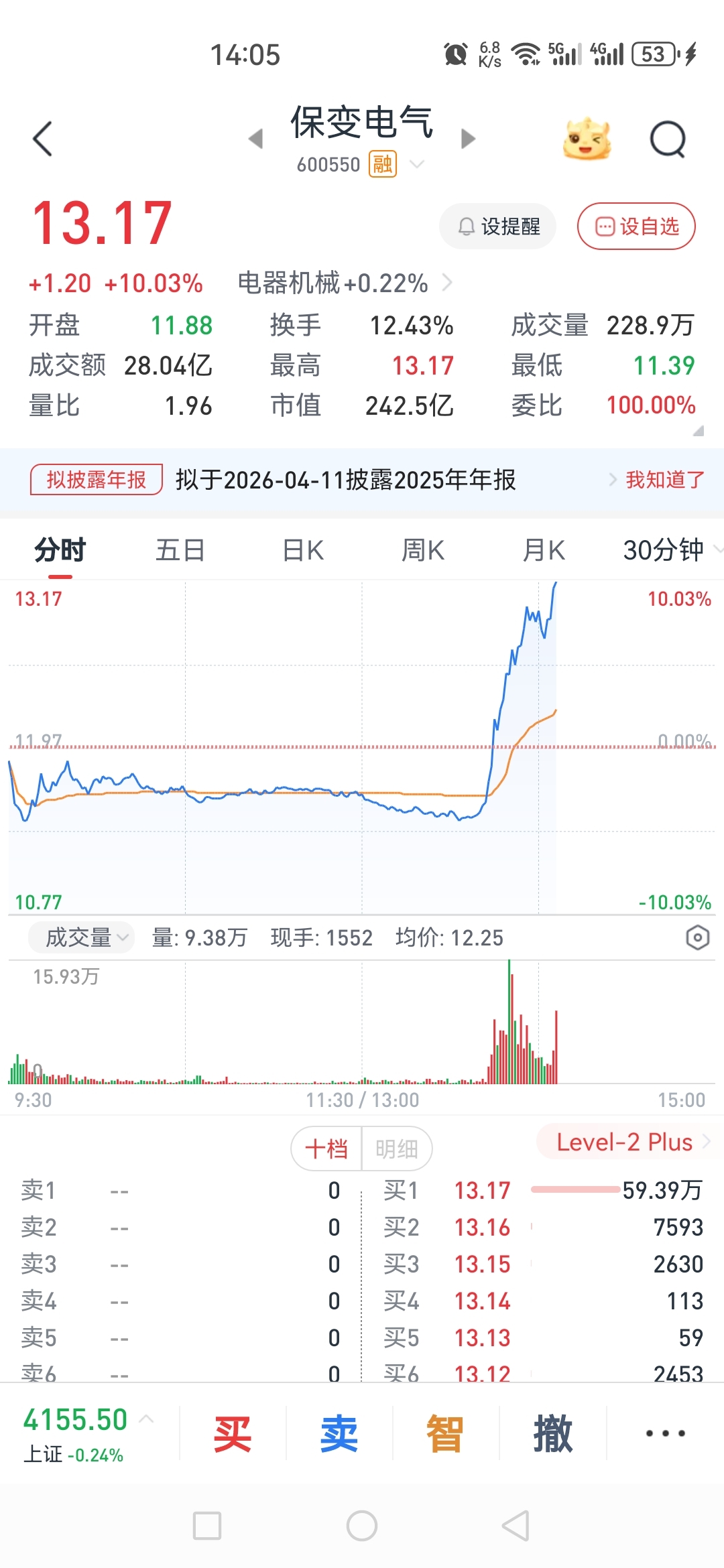 $保变电气(SH600550)$ 昨天收盘集合竞价买的,今天折磨了老子一天,还好拿住了