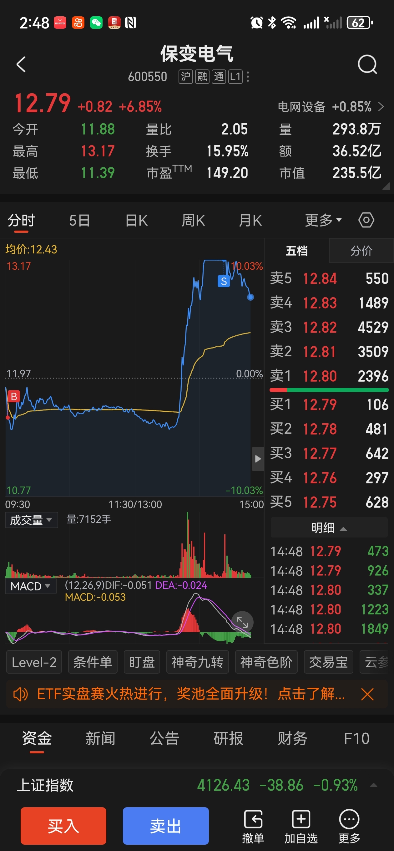 $保变电气(SH600550)$ 今天t了1.63元,短期洗不出去了,砸吧
